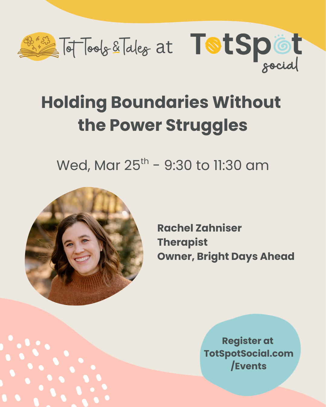 Holding boundaries with toddlers doesn’t have to mean constant power struggles. In this session with play therapist Rachel Zahniser, you’ll learn how to set clear, confident limits while strengthening connection with your child (ages 0–6). Your little one will be invited to join in for a few fun, guided moments, and can also explore our 12+ interactive play stations while you soak in practical, real-life tools you can start using at home right away.