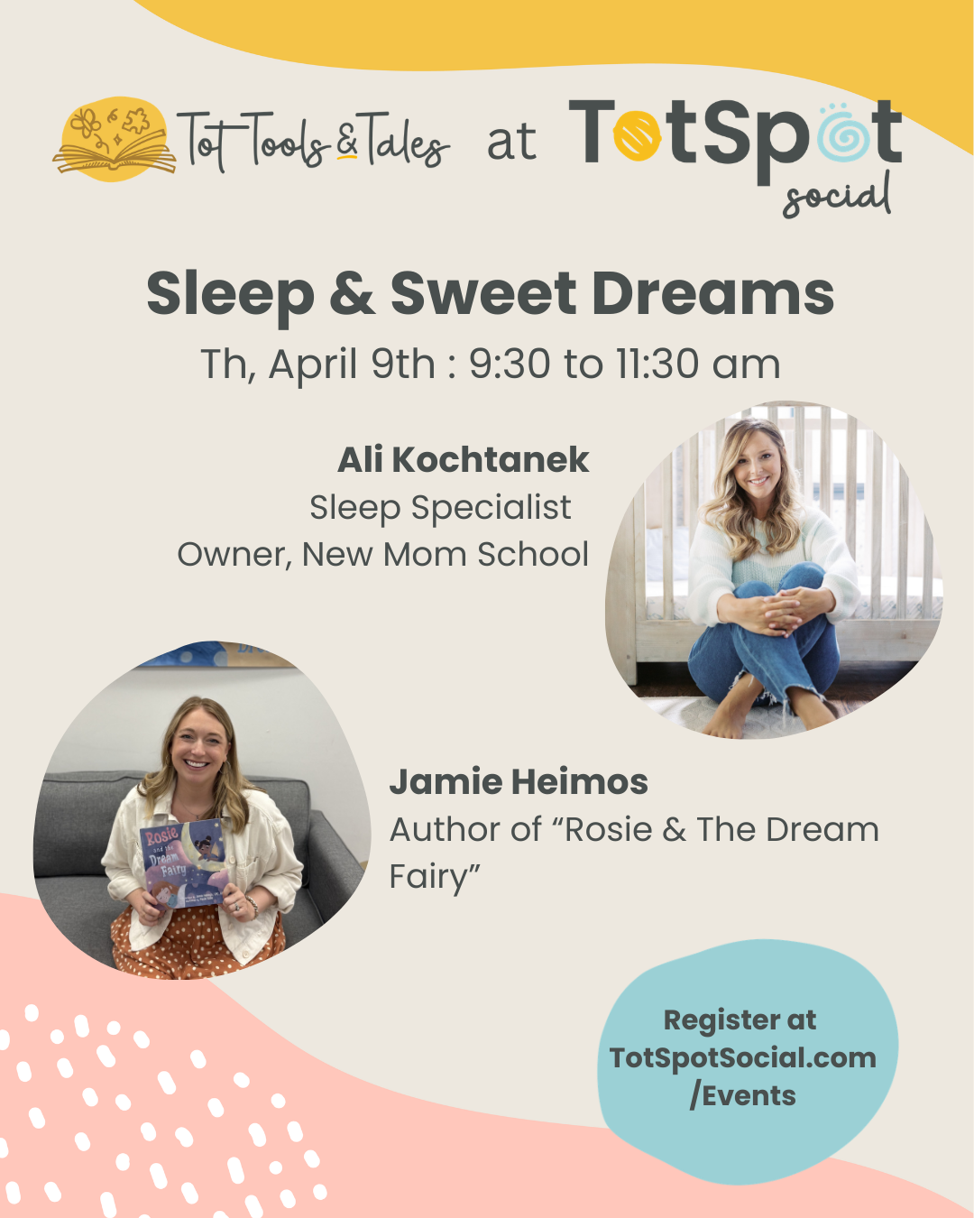 To celebrate the role stories can play in winding down for the night, play therapist & author Jamie Heimos will also read her book Rosie and the Dream Fairy.